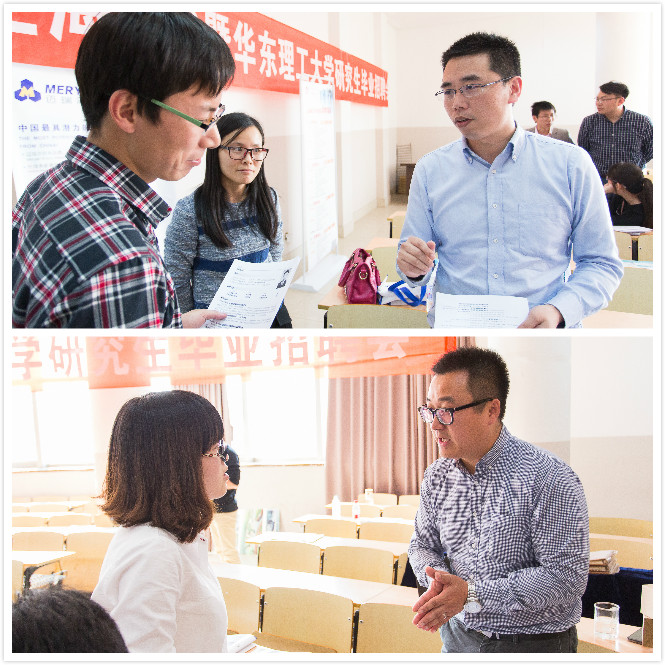 12年优秀毕业研究生、高级销售经理周璇;上海毕得医药科技有限公司研发副总裁张锐豪;上海西陇生化科技有限公司副总经理阿庆德;萨恩化学技术(上海)有限公司高级销售副经理邓治文;上海迈瑞化学技术有限公司营销总监程焱东;上海阿拉丁生化科技股份有限公司营销总监费志锋出席招聘会,研究生聆听了公司介绍,并投递简历。