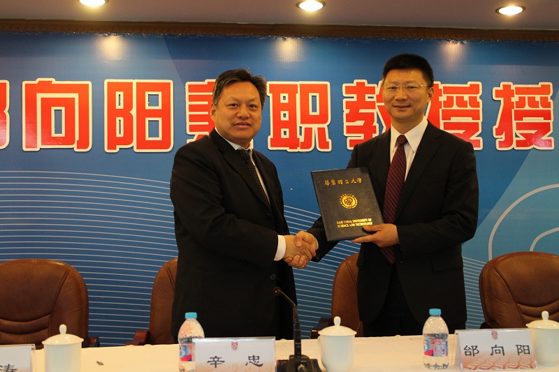 授聘仪式上,李涛书记介绍了邰向阳教授的简历,辛忠副校长为邰向阳教授颁发聘书并佩戴免费黄色网站