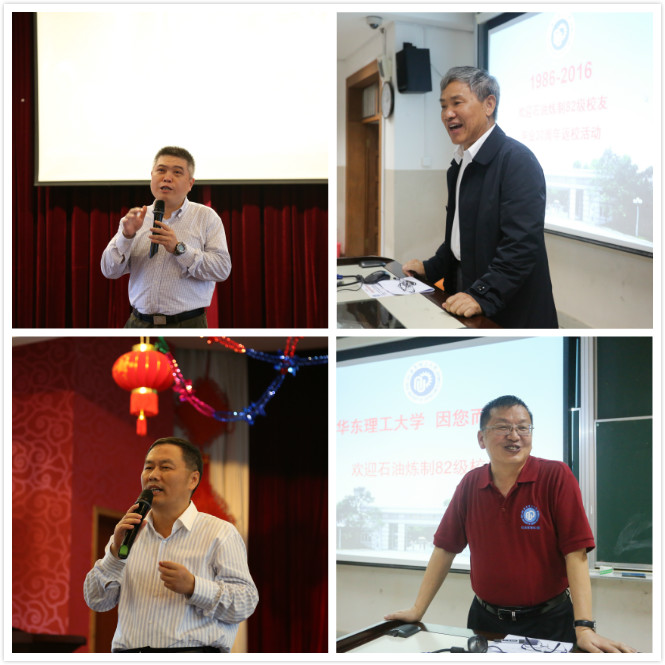 下午,校友们按专业分为三个会场分别座谈,校友们叙友情,共忆峥嵘岁月。大家纷纷介绍了各自离校后的经历,许多都成为了各领域的翘楚,或走上了领导岗位,但所有人都表示自己的成功在相当程度上得益于祖国的发展,得益于自己在学院所受的教育与熏陶、得益于在华理所认识的老师和同学的帮助。中国石油天然气集团公司总经理章建华在参加炼油820的座谈会时,提到感谢学校及恩师的教育和培养;华谊集团总裁刘训峰在工820的交流会上表示,毕业30周年的相聚让人兴奋和自豪,希望大家珍惜当下,珍惜同窗情;珀金埃尔默企业管理(上海)有限公司中国区总经理朱兵博士在有820的交流会上祝愿同学们在各自的岗位上发挥更大的作用,为母校争光添彩。