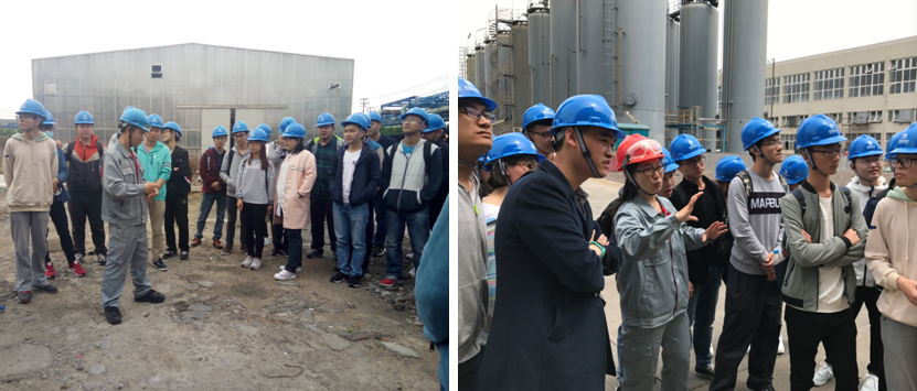 在随后的参观过程中,全体同学分为三个小组,在安环部经理助理陈国清、研发中心副主任曹华俊以及生产部专员陈汝的带领下,分别进行实地参观、交流学习,使同学们对合盛硅业的相关工艺流程以及有机硅产品生产情况有了一定的了解。