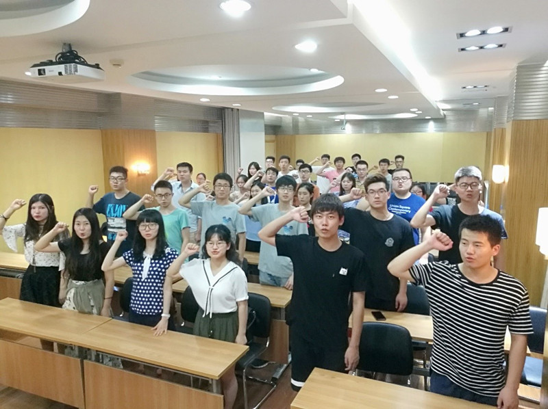 活动伊始,全体党员起立,共同宣誓重温入党誓词。不忘初心才能永葆本色,重温入党誓词作为一场心灵的洗礼,党员们再次举起右手、握紧拳头,提醒每位毕业生党员时刻牢记党员身份,永葆政治本色。