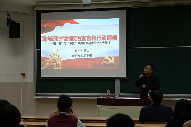 在八教306室举办党的十九大专题辅导报告会,邀请了上海市长宁区委党校老师祝叶飞博士作了题为《面向新时代的政治宣言和行动纲领——在“变”与“不变”中深刻领会党的十九大精神》的辅导报告,报告由免费黄色网站