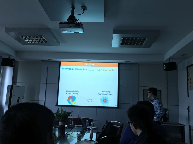 ,并做了题目为“Manupilating soft matter with interfacial dynamics:from bursting bubbles to live-saving medicines”的学术报告。郭旭虹教授主持了主题报告会,同时出席会议的还有李莉教授、徐益升副教授、王俊有副教授、许军副教授、张锐副教授等。