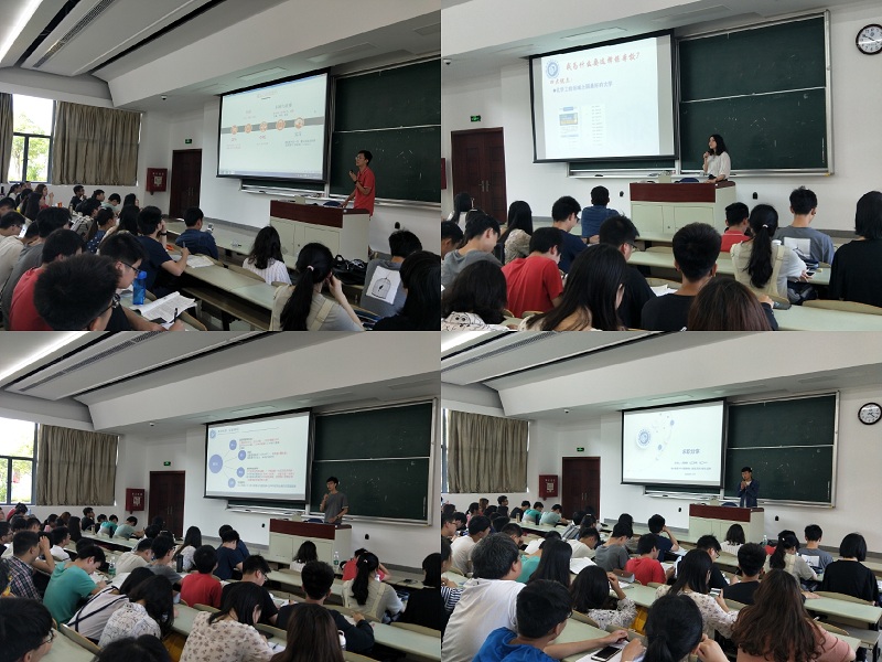 本次年级大会由“预见未来”、“把握现在”两部分组成。在“预见未来”环节,特别邀请到了14级四名优秀学长学姐,分别从保研、考研、出国、工作四个方向,向同学们详细介绍如何定位目标、如何进行准备、如何进行申请等经验,分享大学四年的收获与感悟,引导同学们积极思考自身生涯规划,消除大学入校以来的迷茫与困惑,及早明确奋斗方向而为之不断努力。