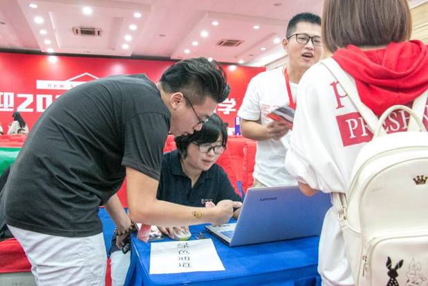 在报到现场,两名入学新生还收到了意外的惊喜:来自志愿者和辅导员老师的生日祝福。吴允和平国胜两位同学在报到当日迎来进校之后的第一个生日,在场的志愿者和辅导员则共同为他们庆祝。