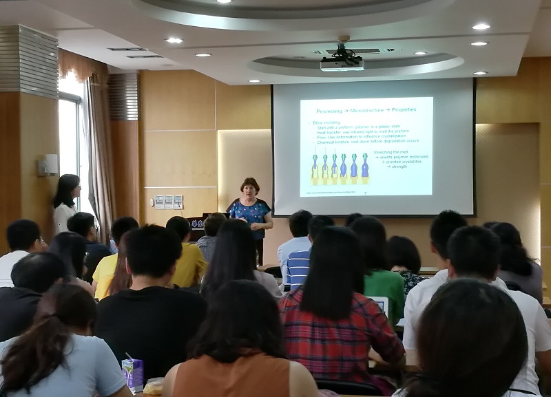 Kornfield教授用生动的语言向在场师生详细介绍了一种用于治疗冠心病的永久性金属支架的替代品,由聚(L-丙交酯)材料制作的生物可吸收血管支架(BVS),并详细剖析了聚(L-丙交酯)形态学上的多样性及其制作BVS的优势。同时,她向大家分享了自己多年从事科研的心得体会,尤其是如何克服科研中的困难逐步开展科学研究工作,提高效率,取得好的研究成果。