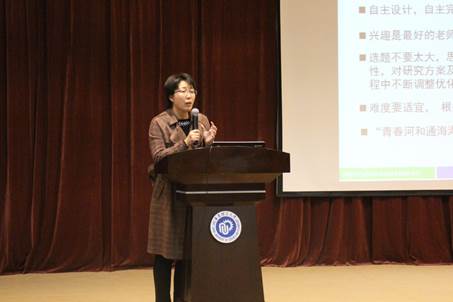 接着,国家级大创项目负责人徐晶以大创学术理念与思维为主题,面向同学们开展大创项目过程中的实际问题进行针对性指导,如课题、导师的选择方式;如何开展课题研究;相关科研条件等等,结合个人亲身经历深入浅出地进行讲解,使同学们对学术理念有了更加透彻的理解,并将研究思维的培养提高作为努力的目标。