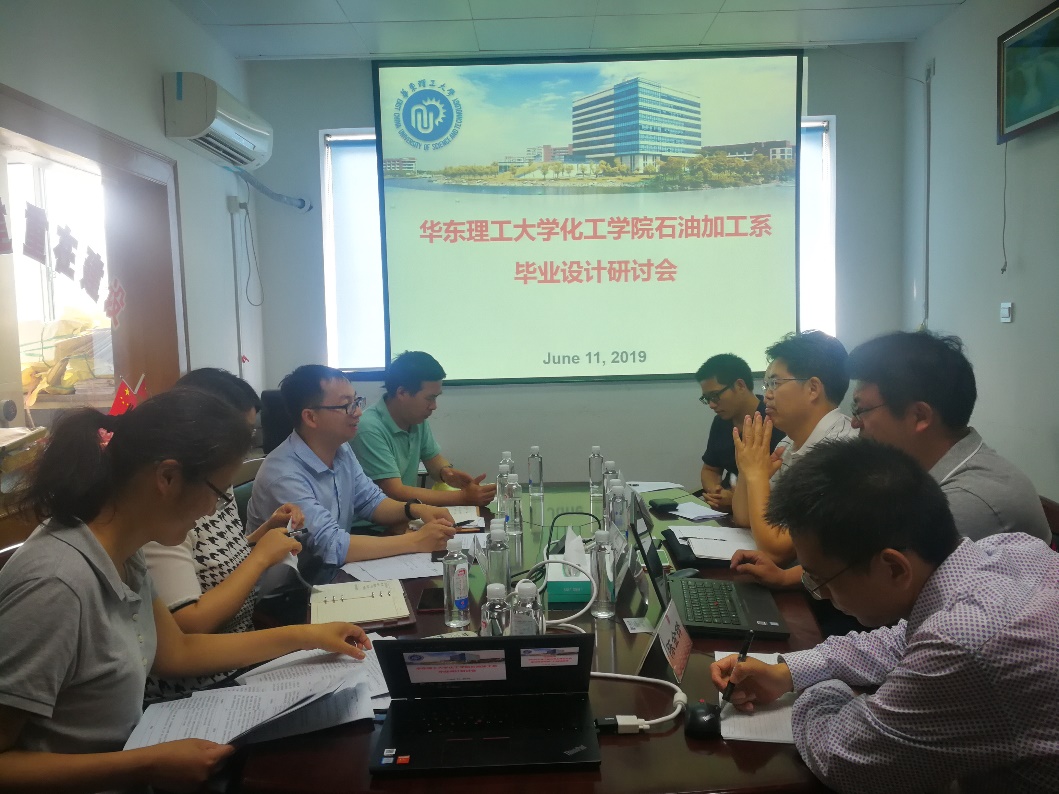 实践育人基地和石油加工系产学研实践基地作用,尽快形成设计院—院系全方位合作的工程实践培养模式。王湛代表上海分公司介绍了公司历史沿革和在丙烯腈、天然气化工等方面的优势集成技术。赵基钢代表石油加工系对秦总一行专程来华理参加专业设计答辩和长期支持表示感谢,并分析总结了当前毕业设计教学环节中面临的主要问题。会上,指导教师还与上海分公司的领导就设计规范查询、失效和图例标准、消防、安全和环评等方面的问题进行了交流。
