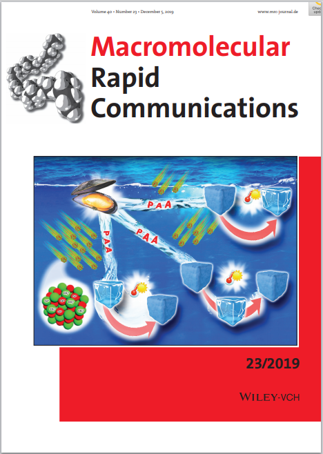 特聘研究员王义明与郭旭虹教授研究团队报道了一类可灵活调控温敏类型的超分子聚合物水凝胶材料,并将其成功地应用于对荧光模型信号的切换控制。相关研究结果以“Mineralized Supramolecular Hydrogels Bearing Tunable Thermo-Responsiveness”为题发表在高分子领域权威期刊Macromol. Rapid Commun.上,并被选作当期的封面论文。(//onlinelibrary.wiley.com/doi/full/10.1002/marc.201900516)。