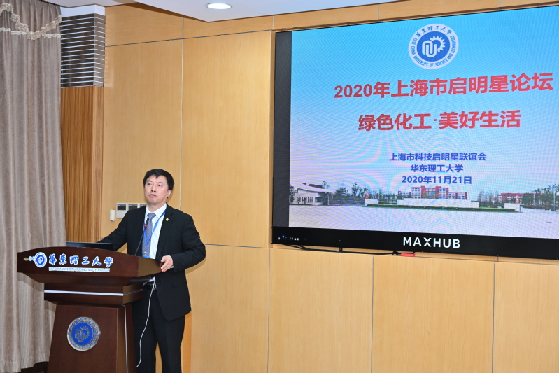 的江浩教授、屈雪教授和段学志教授分别作了主题报告。报告会由上海交通大学朱新远教授、上海交通大学医学院附属瑞金医院神经病学研究所丁健青研究员、同济大学吴广明教授、上海科技大学鲁雄刚教授、上海理工大学杨俊和教授主持。论坛现场氛围活跃,各位专家学者围绕“绿色化工•美好生活”的主题,结合报告展开了深入交流,并与在场的青年教师进行了探讨。