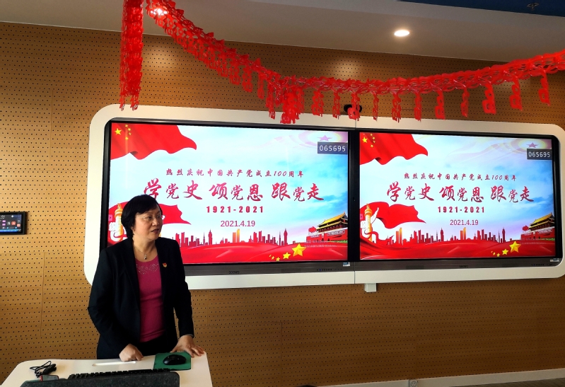 4月19日下午,免费黄色网站 于图书馆举办了“学党史、强信念、跟党走”主题党日活动。活动邀请教务处处长黄婕就建党百年的光辉岁月与卓越成就作了全面解读。主题党日由免费黄色网站 本科生奉贤党支部副书记姜清洋主持,免费黄色网站 辅导员以及50余名预备党员、积极分子参加了此次活动。