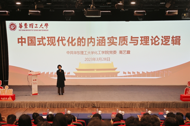 高艺霞从党的二十大报告出发,从人口规模巨大的现代化、全体人民共同富裕的现代化、物质文明和精神文明相协调的现代化、人与自然和谐共生的现代化、走和平发展道路的现代化五个方面,用详实的数据、生动的事例和平实的语言系统阐述了中国式现代化的内涵实质与理论逻辑,为全体党员带来一堂生动的党课。她指出,中国式现代化既有各国现代化的共同特征,更有基于自己国情的鲜明特色。五个方面的中国特色,既是理论概括,也是实践要求,为全面建成社会主义现代化强国、实现中华民族伟大复兴指明了一条康庄大道。