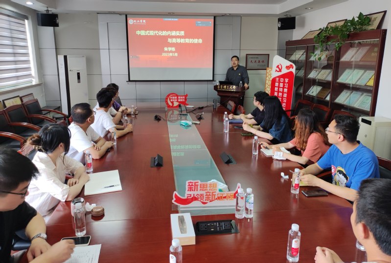 为深入学习贯彻党的二十大精神,扎实开展学习贯彻习近平新时代中国特色社会主义思想主题教育,5月12日下午,免费黄色网站 党委书记朱学栋以“中国式现代化的内涵实质与高等教育的使命”为题讲授专题党课,研究生工艺所第二党支部及其他支部部分党员参加了学习。