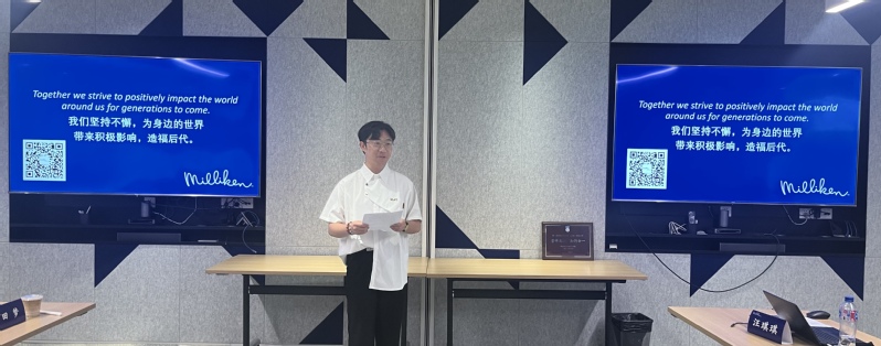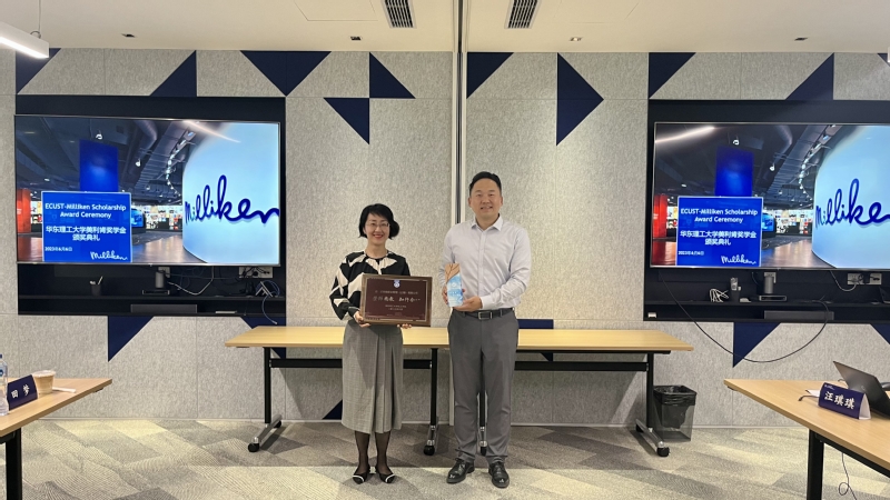 美利肯奖学金颁奖典礼并与校友们进行交流。美利肯企业管理(中国)有限公司亚太区高级人力资源总监于磊、化工部中国区销售总监徐开亮、化工部高级技术经理卢振潇等出席。