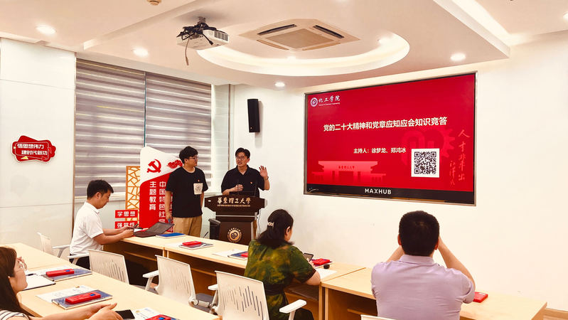最后,联反所教工党支部的徐梦龙和研究生党支部的郑鸿冰组织开展了联学共建暨党的二十大精神和党章应知应会知识竞答活动。此次知识竞赛以党的二十大报告为主要内容,涵盖大会主题、“三个务必”“三件大事”“五个必由之路”“五个重大原则”“六个必须坚持”等重要知识点。竞赛现场,大家沉稳作答,秩序井然。