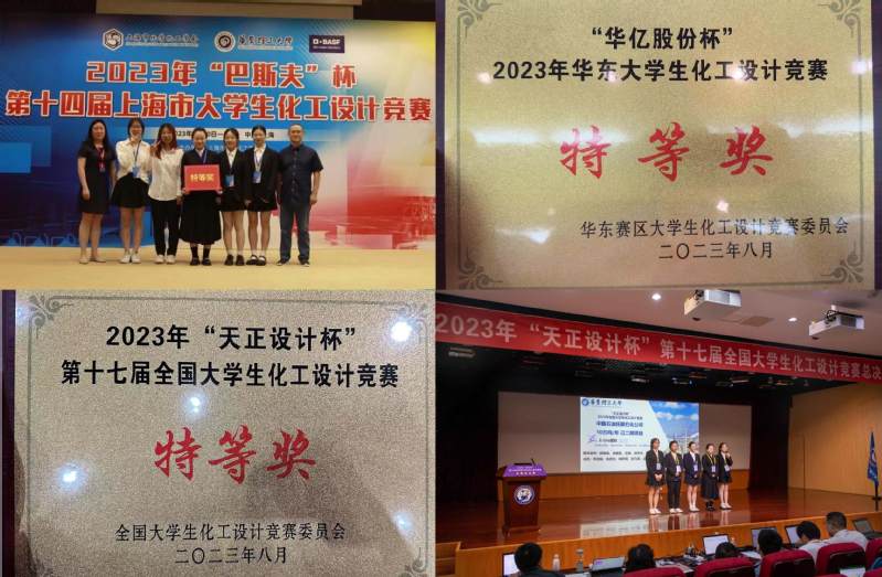 参加了8月初在上海电力大学举办的“华亿股份杯”2023年华东大学生化工设计竟赛暨第十七届全国大学生化工设计决赛华东选拔赛,获得特等奖和现场答辩优秀奖两个奖项,并取得华东赛区参加全国总决赛的8个名额之一。