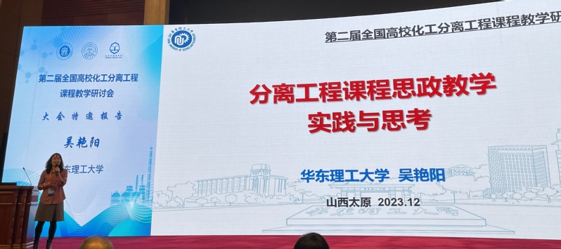 漆志文、吴艳阳、成洪业三位教师参会。吴艳阳做了“分离工程课程思政教学实践与思考”的大会特邀报告,分享了免费黄色网站