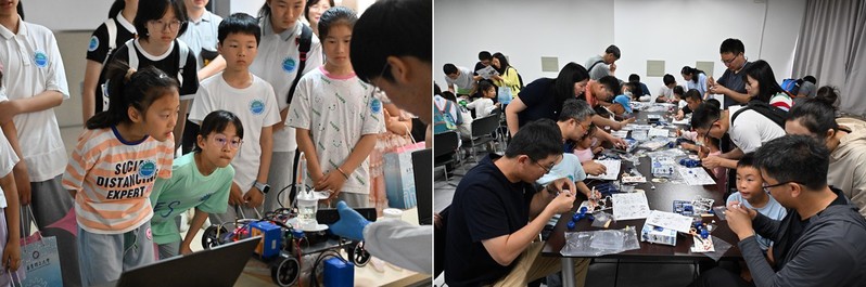 在中心展示厅,Chem-E-Car团队成员用视频回顾了科创竞赛经历,现场还展示了化学赛车以及控制反应的实验过程,激发了学生们对科学实验的热情。本次活动的高潮是搭建玩具小车并用盐水驱动的环节,让大家在实践中享受科学带来的乐趣。