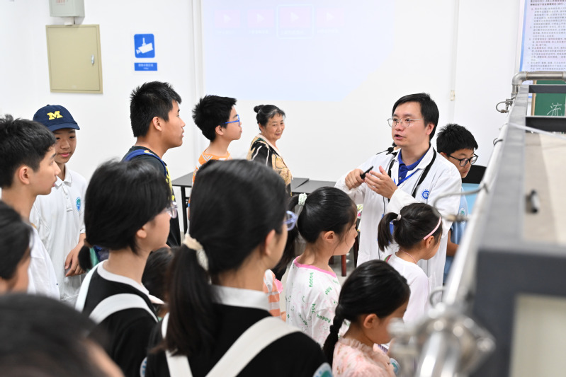 在实验中心雷明老师的带领下,参观者走进化工实验室,近距离观察了解精馏塔、流体流动中泵和管道等关键设备的结构和工作原理,结合酒精精馏、石油和天然气输送等例子,活动指导老师深入浅出地为学生们介绍了化工在生活中的实际意义。学生们对化工流程和装备充满了好奇,积极提问,现场氛围热烈。