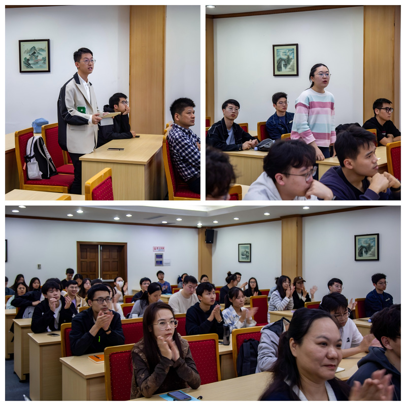 、材料学院、机动学院、资环学院、商学院、法学院等近百位师生代表参加。报告会由朱学栋主持。