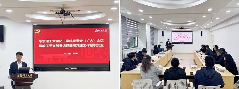 段学志首先带领全体与会人员深入学习了学校第十二次党代会精神,围绕大会报告中提出的“四化”战略、“两新两大”发展布局、“三会”建设、培育“三风”等重要内容进行解读,剖析了这些数字所蕴含的内涵和重要意义。他强调,坚持四个“面向”,聚焦国家“双碳”目标和三大任务,聚焦能源资源、绿色安全、健康与老龄化等人类未来难题,要将学校党代会精神融入到日常工作中,以实际行动践行党的宗旨,不断做强、做深、做大“化”字文章,推动学院各项事业高质量发展。