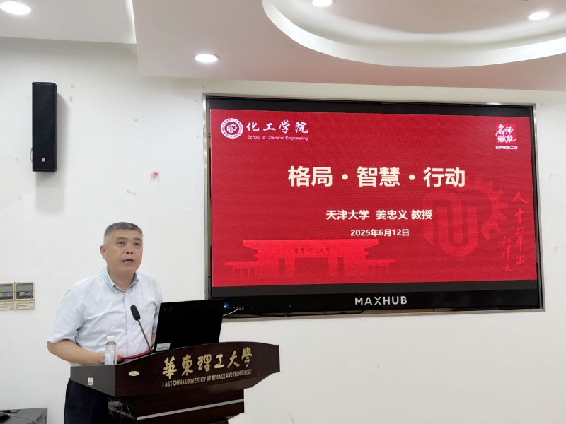 报告会上,姜忠义回溯团队科研征程,生动讲述国际首创“有机分子筛膜”概念,以及重构“电子传递、质子传递、分子传递”新三传理论框架的艰辛与荣耀。他提出“新质化工=绿色化工+新质生产力”的创新理念,为化工领域发展锚定崭新方向。在育人维度,他以“格局三维度(高度、深度、广度)”、“智慧三层次(小智、中智、大智)”、“行动三境界(执行、践行、笃行)”为理论框架,结合丰富案例,深入剖析如何将教育家精神融入科研管理与人才培养。他提出的科学研究“四多(STEP)”步骤:多观察、多思考、多实践、多总结,引发师生共鸣。此外,姜忠义还分享了科研团队的管理经验,通过幽默风趣的导学关系案例,为在场师生提供极具实操性的指导。