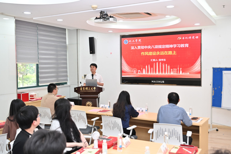 段学志以“深入贯彻中央八项规定精神学习教育——作风建设永远在路上”为题为毕业生党员们讲授专题党课,深刻阐释了中央八项规定精神的时代意义,并要求毕业生党员将纪律规矩装入“政治行囊”,以清醒的政治自觉迎接人生考验。