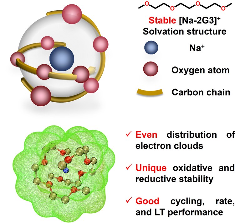 本研究强调了溶剂化结构中均匀电子云分布对电解液性能的影响,并提出了一种有前景的电解液设计策略,可以给高性能钠离子及其他阳离子基电池电解液的设计提供参考。
