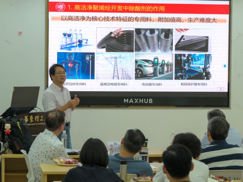 冯嘉春教授作了题为“两种常用除酸剂在若干高洁净Ziegler-Natta聚烯烃中作用效果的对比研究”的学术报告。他介绍了常用除酸剂在高洁净聚烯烃体系中的应用发展历程,并从聚烯烃净化机理出发,对比了两种常用除酸剂之间的优势和不足,创新提出了基于复配除酸策略的动态中和机制,包括物理吸附型除酸剂、化学反应型除酸剂、复合结构负载型除酸剂以及功能性分子筛材料等,显著提升了聚烯烃产品的洁净度与稳定性,并展望了该技术在高端医用包装、电子级封装材料等领域的应用前景。