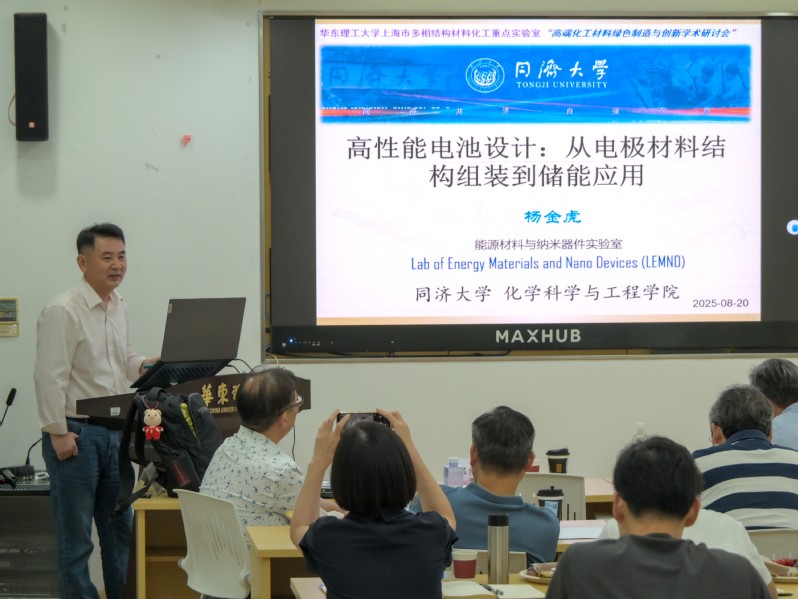 杨金虎教授作了题为“高性能电池设计:从电极材料结构组装到储能应用”的学术报告。他梳理了从电极材料结构组装到储能系统的研究发展历程,并从多级结构设计理念出发,创新提出了基于界面调控与空间限域效应的电极组装策略,制备出一系列新型高性能电极材料,包括多层复合电极、硅碳复合负极及固态电解质等,显著提升了电池的能量密度与循环稳定性,并展望了高性能电池在电动汽车、规模储能及可穿戴设备等领域的应用潜力。
