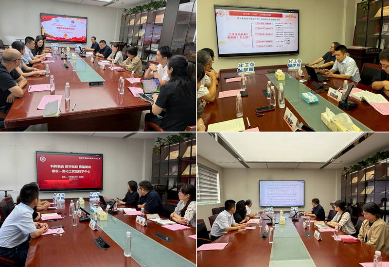 在会议第二阶段,双方围绕“党建引领教育教学”主题展开交流。范兴老师分享了“党支部工作12345模式”的创新实践,重点介绍了如何通过党建抓手,将思想政治教育有机融入化学化工专业课堂教学与科研训练,实现立德树人根本任务。 化工系第二党支部党员、化工专业实验教学中心副主任徐菊美老师以“科教融合、数字赋能、质量驱动、建设一流化工实验教学中心”为题,系统介绍了实验中心在党建引领下取得的建设成果。她特别强调,中心在实验教学项目中注重挖掘和融入“工匠精神”“安全环保意识”与“绿色化工理念”等思政内涵, 以荣获“2024年上海市高校示范实验教学中心”为契机,全面提升育人质量。
